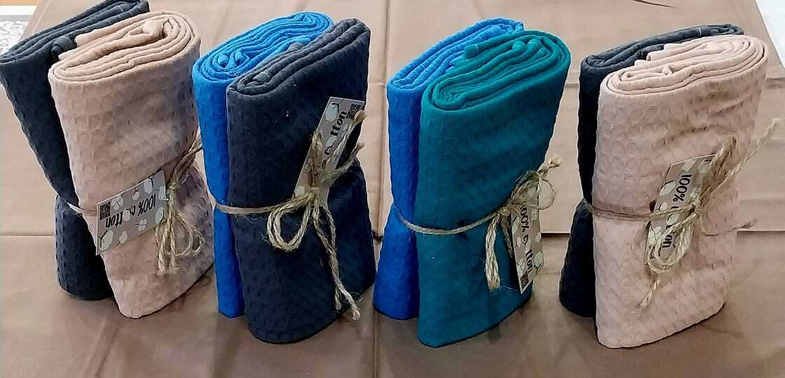 Вафельное полотенце — это изделие из ткани с рельефной поверхностью, напоминающей соты, часто используется для вытирания тела или посуды после мытья, а также для декоративных целей.